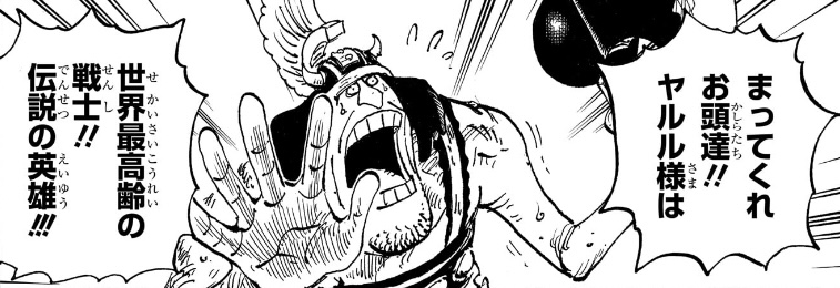 そんなにヤルルが「世界最高齢の戦士」で「伝説の英雄」で「みんなの憧れ」という説明をしたかったのでしょうか。
