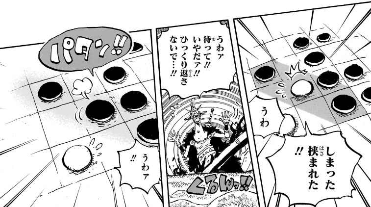 なぜなら、オセロのルールが丸ごと採用された能力の場合、それは「オセオセの実」のオセロ人間とか、「リバリバの実」のリバーシ人間のように、オセロそのものを能力としていない限り、説明がつかなくなってしまうからです。