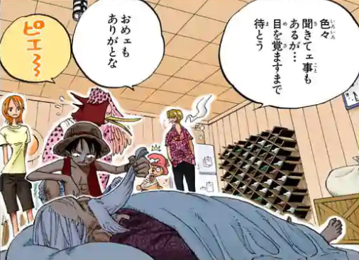 宴会に現れた際も、ルフィから「ん? 誰だ?」と聞かれたのにもかかわらず、