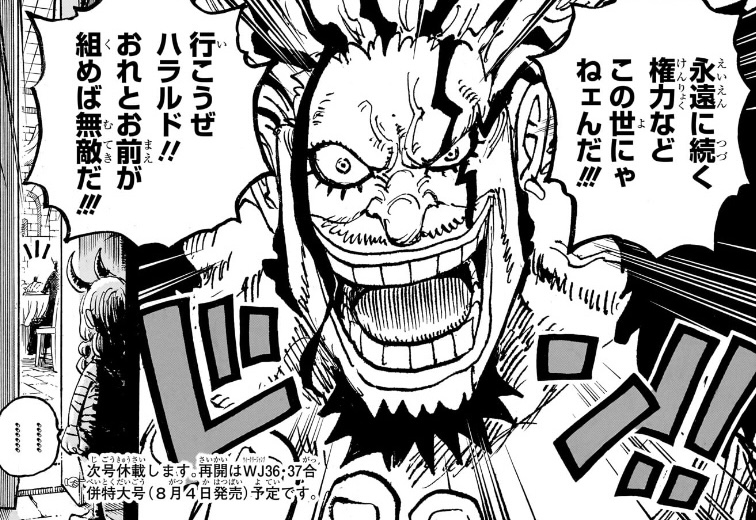 コメントで誰かが指摘してたけど以前の回想ではカイドウが加入する際にはもうハチノスは髑髏型になってたって矛盾も起きてるんだよね