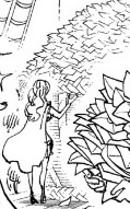 で、よく見ると手紙ではなく、下の籠のほうに触れているっぽいので、この大籠を引っ張ってきた(この場に運んできた)女って事なのでしょう。