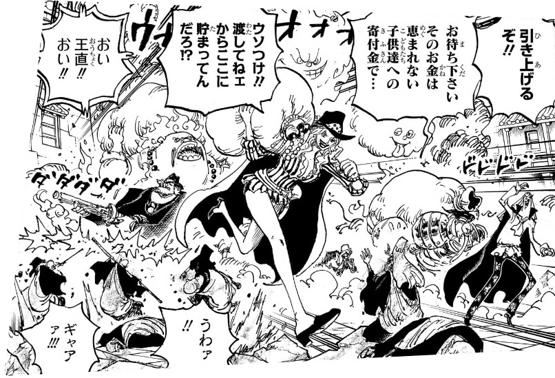 ロックス海賊団の動向自体そもそも描く必要がないというのに、「慈善団体の寄付金強奪シーン」など尚更描く価値がないどころか、むしろ設定がブレるだけの害悪シーンとしか思えません。