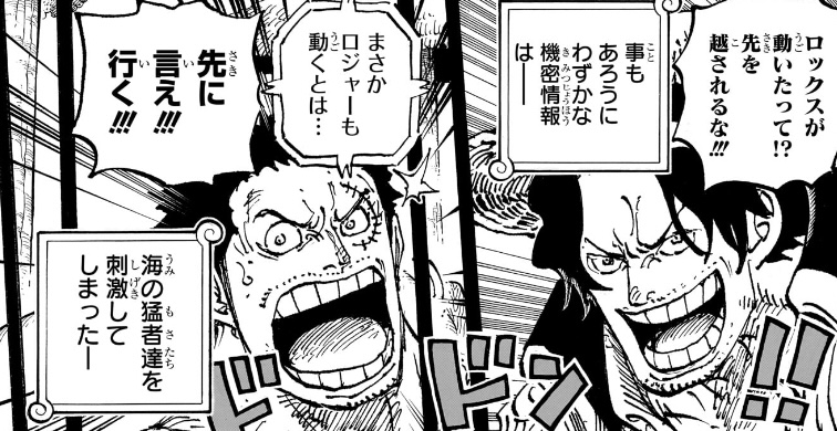 ロックス海賊団は伝説になった者揃いだから四皇レベル何人かいるけどロジャーのとこって船長も当時は四皇クラスか怪しいのに他モブ達じゃ場違いすぎるやろ