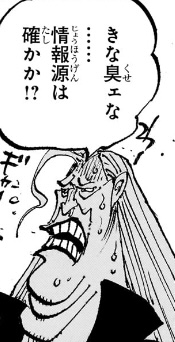 この後であれば、「“天竜人”達のゲームの存在」「シャクヤクがその賞品にされている」「誘拐したのは政府の奴ら」といった情報自体に都市伝説的な胡散臭さがあるため、「きな臭ェ」というリアクションになるのもわかります。