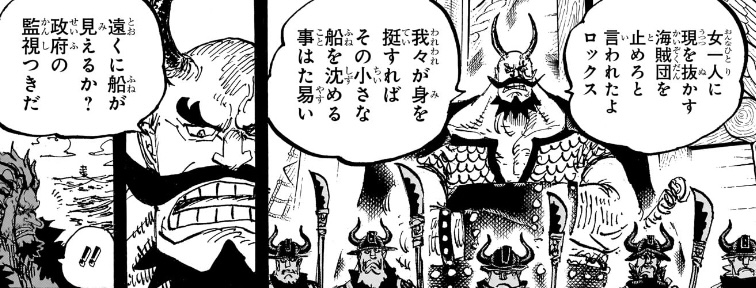 小物モブの失態によって誘拐された、というだけでは、ロックス海賊団が(大切にしていた女という)「宝」が奪われる点にまるで説得力がないため、ものすごく強引で作為的な展開に感じてしまいます。