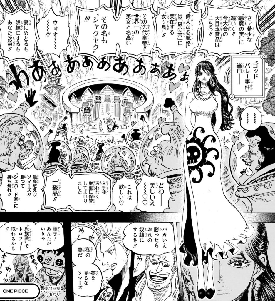 そもそもシャクヤクが海賊島にいることは世界中に知られているわけで、当然天竜人も知っているわけですから、裏切り者など作る必要ないと思うのですが、この悪事が仲間にバレて始末される展開でも描かれるんですかね?