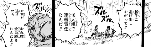 1096話では一切描かれず、その名前すら出てこなかった「デービー一族」を舞台にあげて晒しあげ、突如人間狩りゲームの大ネタだった事にしてしまいます。