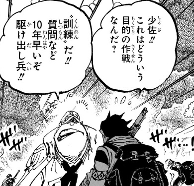 現在の姿をほぼ描いておらず、謎が多いからこそ今後活躍シーンが描かれる事を期待できるというのに、過去の姿を先に掘り下げられ、それも全然「らしさ」や個性を感じない、ただのモブ海兵のような描かれ方をすると、活躍シーンを描く前から大した人間ではないことがわかってしまい、期待値が薄れてしまうんですよ。