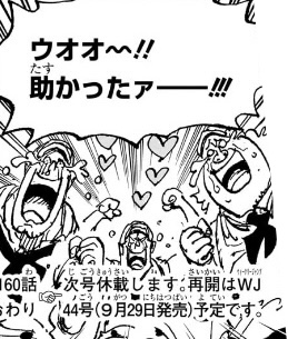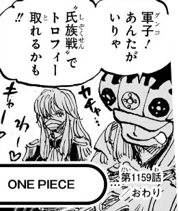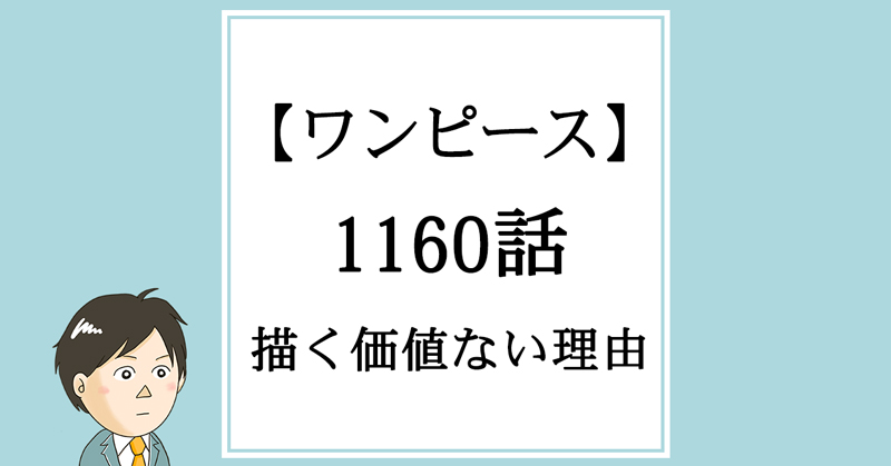 1160話、ロックス海賊団や神の騎士団の登場シーンは、絵としてはカッコよかったのですが、まぁ、結局大ゴマの一枚絵がいいと言うだけであって、漫画として面白いわけでは全然ないんですよね。。