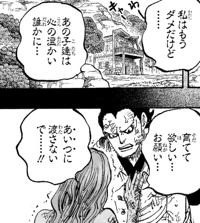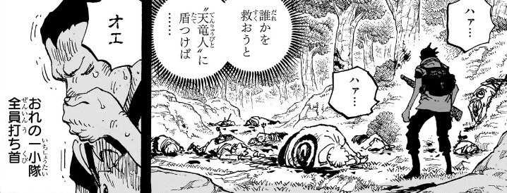 どの視点から見ても全てがあり得ず、単に「天竜人に狙われた可哀想な家族」を記号的に描いているだけでしかない。