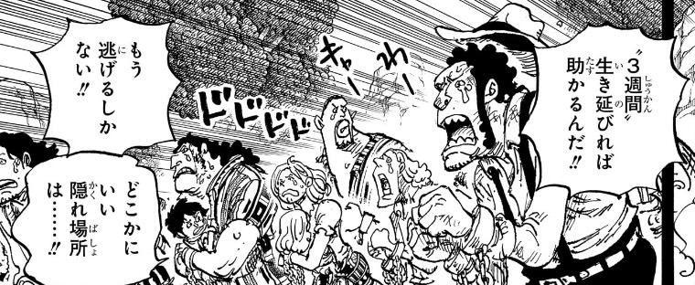 この点は1096話の時に指摘しておくべきだったのですが、「3週間」って長すぎません?
