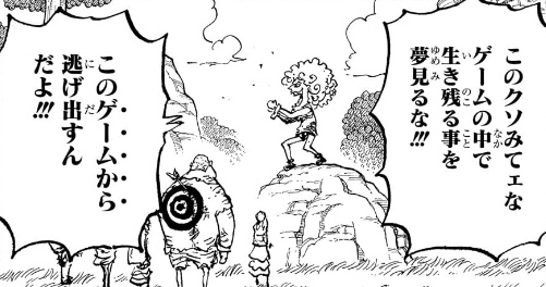いずれにせよ、3週間もかける必要性が描けていないため、ただただ無駄に長く、ハンター側(天竜人側)もしんどいだけで途中で飽きるとしか思えないゲームになっています。