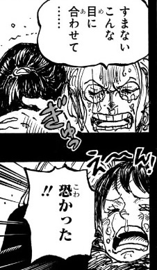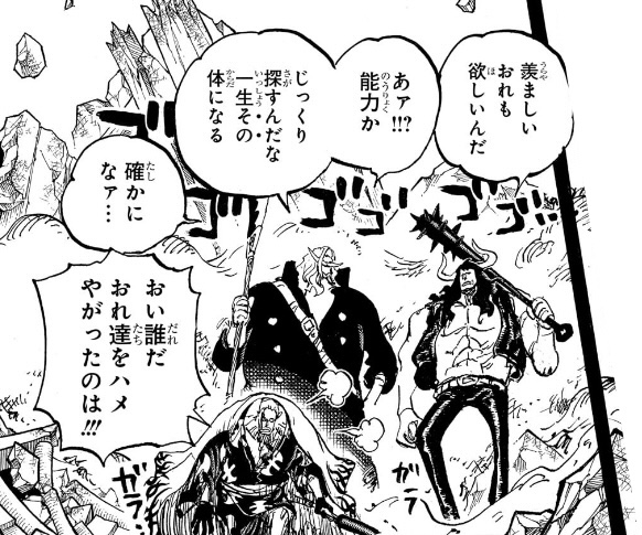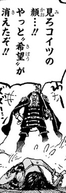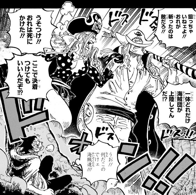 尚、この後たまたま白ひげ達が現れたことで命を拾うことになるのですが、その際も「逃げられそうだが…赤ん坊達を奪われた」と依然として戦う意思は微塵もなく、逃げることしか考えていません。