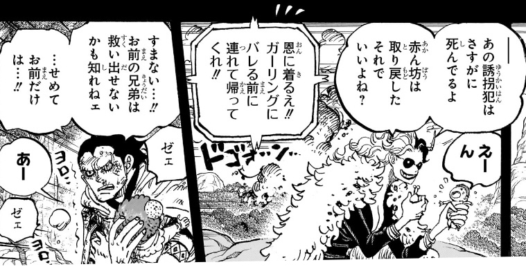 👇🏻この描写で(ガーリングから子供達のことを任されていた)天竜人からこっそり奪ったとわかりますか?