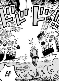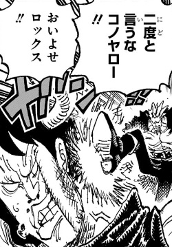 - 「このクモ攻撃効いてねェのか!?」というロジャーの感想が遅すぎる。これは前話で(自分達の連携技が効いておらず復活した後に)描いておくべきセリフであり、苦しんでいるロックスを見た後のリアクションとして明確に間違っている。