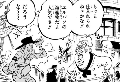 作者は「人気でさ!!」という最後の一言だけを拾って次のセリフを言わせているわけですが、右のおっさんが聞いているのは「(エルバフの海産物が人気だから)もっと仕入れられねェかな?」という事なんですから、「だろうな〜〜〜」と返すのでは会話にならないでしょう。