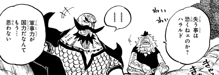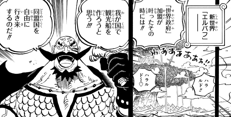 が、何度も指摘してる通り、今のエルバフの問題点が全然わからないため、世界政府に加盟する事が「明るい未来」につながると説くハラルドの言い分に、まるで説得力がありません。