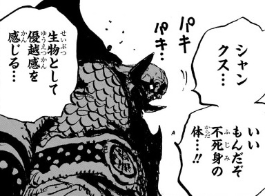1167話では、(全くシャンクスに見えない)口汚くイキり倒すだけの痛々しいシャンクソ聖が何の説明もなく唐突に描かれ、