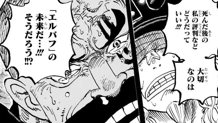 で、「ラフテルに行くこと=海賊王になる事」なんですから、それに何ら興味を示さず、すでに現役引退したからその役は当然次世代に任せているかのような達観したスタンスだと、「じゃあお前は何のために海賊やってんだよ」って話になってしまいます。
