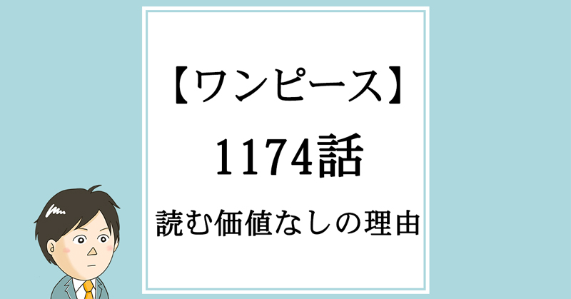 1174話、もう読むのがめんどくさくなるくらい、くだらなくて中身がなくて退屈でテンポが悪くて穴だらけで薄っぺらくて読む価値を感じない1話でした。